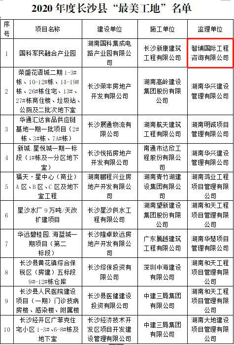 | 2020年長沙縣十大“最美工地”新鮮出爐,智埔國際監(jiān)理項(xiàng)目上榜 |